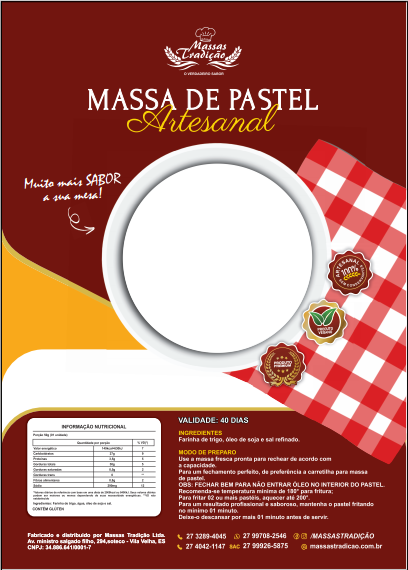 Descubra a Massa de Pastel Tradicao artesanal 1kg, livre de conservantes, corantes e aromatizantes. Perfeita para quem busca qualidade e sabor autêntico na preparação de pastéis, este produto vegano garante uma massa firme e saborosa crocante verdadeiro Sabor Tradicional , perfeita para fritar ou assar. Crocância e qualidade em cada pedaço!